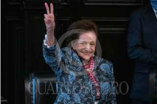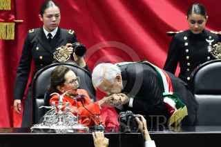 CIUDAD DE MÉXICO, 05OCTUBRE2024.- Ifigenia Martínez, presidenta de la Cámara de Diputados, falleció este día a los 94 años de edad. Así lo confirmó a través de redes sociales Ricardo Monreal, coordinador de la bancada de Morena en la Cámara de Diputados. En la imagen, Ifigenia Martínez, encabeza el paso de la banda presidencial, de Andrés Manuel López Obrador, presidente saliente de México, a Claudia Sheinbaum, presidenta de México el pasado 1 de octubre. FOTO: ARCHIVO/MARIO JASSO/CUARTOSCURO.COM