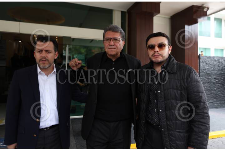 CIUDAD DE MÉXICO, 06OCTUBRE2024.- Los nietos de Ifigenia Martínez Hernández, Antonio Rojas y Rodrigo Rojas, así como el diputado Ricardo Monreal a la llegada del funeral de Martínez. FOTO: ANDREA MURCIA /CUARTOSCURO.COM