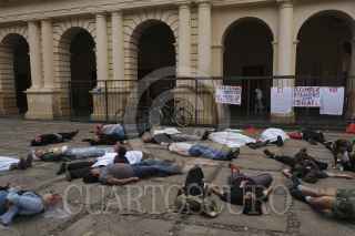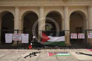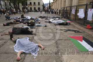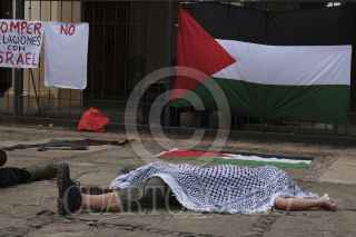 SAN CRISTOBAL DE LAS CASAS, CHIAPAS, 06 OCTUBRE 2024.- Decenas de personas pertenecientes al colectivo Acción Palestina Chiapas en el marco de la Semana de Acción Global pro Palestina realizaron un Simulacro de Bombardeo en la plaza central de la ciudad para evidenciar y concientizar a la población sobre la violencia indiscriminada que se vive en la actual guerra del estado Israelí contra poblaciones civiles en Gaza y el resiente bombardeo al sur de Líbano. Piden al gobierno mexicano rompa relaciones con Israel y a realizar un boicot contra las empresas que apoyan la guerra. FOTO: ISABEL MATEOS /CUARTOSCURO.COM