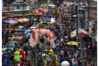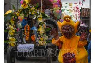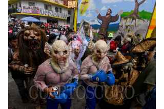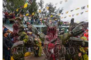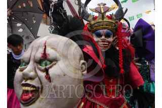 ALMOLOYA DE JUÁREZ, ESTADO DE MÉXICO, 06OCTUBRE2024.- Desde muy tempra hora inició este domingo el desfile de las Momias en San Francisco Tlalcilalcalpan, las calles de esta localidad en Almoloya de Juárez se visten de color y música con el paso de cuadrillas y carros alegóricos que al ritmo de la banda bailan ataviados con diversos disfraces de monstruos, que los mismos participantes empiezan a elaborar al pasar Semana Santa, esta festividad es en honor a su santo patrono San Francisco de Asís, y llegan a disfrutar de este Carnaval no solo los habitantes de la zona si no de otros municipios de la entidad mexiquense, considerado hasta el momento uno de los carnavales más grandes del Edoméx. FOTO: CRISANTA ESPINOSA AGUILAR /CUARTOSCURO.COM