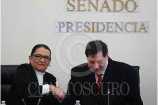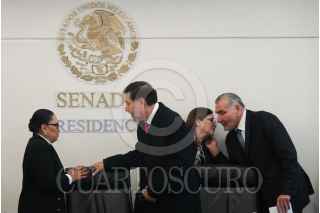 CIUDAD DE MÉXICO, 07OCTUBRE2024.- Rosa Isela Rodríguez, secretaria de Gobernación, saludó a Gerardo Fernández Noroña, presidente de la mesa directiva del Senado de la República, así como Imelda Castro Castro, vicepresidenta de la mesa directiva, a Adán Augusto, coordinador de la JUCOPO, durante la entrega del paquete de iniciativas de Claudia Sheinbaum, presidenta de México, en el Senado de la República. FOTO: GRACIELA LÓPEZ/CUARTOSCURO.COMRO