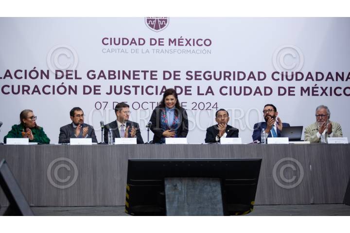CIUDAD DE MÉXICO, 07OCTUBRE2024.- Clara Brugada Molina, jefa de Gobierno de la Ciudad acompañada de Eréndira CruzVillegas Fuentes, Cesar Cravioto Romero, secretario de Gobierno de la Ciudad; Pablo Vázquez Camacho, secretario de seguridad Ciudadana de la Ciudad; Rafael Guerra Álvarez, presidente del poder judicial de la Ciudad; Ulises Lara López, Alejandro Encina Rodríguez, secretario de planeación y ordenamiento territorial de la Ciudad y alcaldes de la ciudad durante la Instalación del Gabinete de Seguridad Ciudadana y Procuración de Justicia de la Ciudad de México. FOTO: ANDREA MURCIA /CUARTOSCURO.COM
