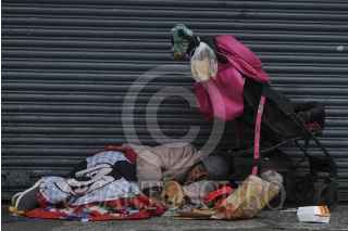 CIUDAD DE MÉXICO, 07OCTUBRE2024.- Entre cobijas y una carreola, un hombre en situación de calle, acompañado de su perro descansa sobre la banqueta de Avenida Eje Central, en el Centro Histórico. FOTO: GRACIELA LÓPEZ/CUARTOSCURO.COM