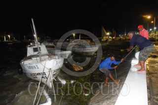 CAMPECHE, CAMPECHE 7OCTUBRE2024.- Pescadores resguardaron sus embarcaciones luego del fuerte oleaje e incremento del nivel del mar derivado de los efectos del huracán Milton, algunas embarcaciones quedaron bajo el agua. FOTO: MICHAEL BALAM /CUARTOSCURO.COM