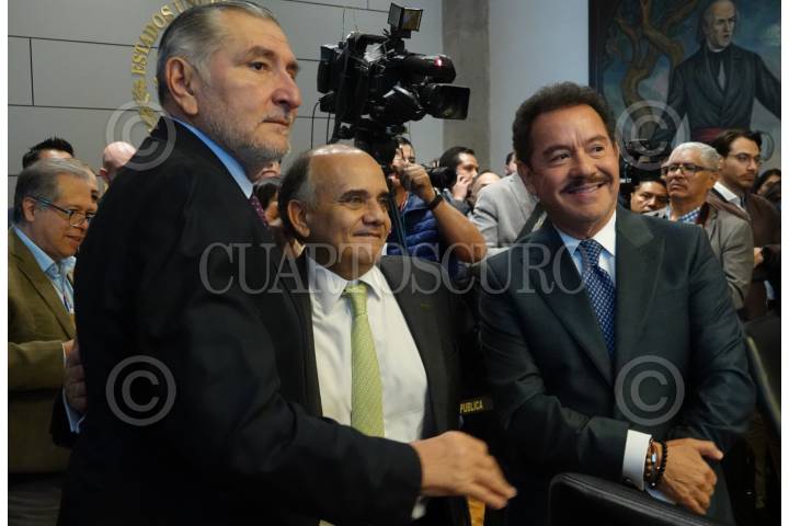 CIUDAD DE MÉXICO, 08OCTUBRE2024.- Los senadores Adán Augusto, Manuel Añorve e Ignacio Mier durante la comparecencia de Juan Ramón de la Fuente como secretario de Relaciones Exteriores en el Senado de la República, casa Xicoténcatl. FOTO: GRACIELA LÓPEZ/CUARTOSCURO.COM