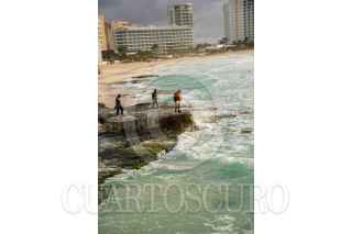 CANCÚN QUINTANA ROO. 08OCTUBRE2024.- Aspectos de la zona hotelera de Cancún, en la que se aprecian las bandas nubosas del huracán Milton que afecta la península de Yucatán. Fuertes rafagas de viento y lluvia en el mar del Caribe Mexicano. FOTO: ELIZABETH RUIZ/CUARTOSCURO.COM
