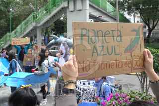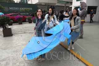 CIUDAD DE MÉXICO, 08OCTUBRE2024.- Activistas que se oponen al megaproyecto "Saguaro Energía", el cual pretende gas natural construir una gasoducto que afectaría el Golfo de California (considerado el Acuario del Mundo), se manifestaron afuera de la Semarnat para exigirla a la nueva secretaría Alicia Bárcena a que se reconsidere el este proyecto, ya que ellos afirman que pone en peligro a especies como las ballenas. Actualmente este megaproyecto gasífero cuenta con el aval de la CFE. Los inconforme exigieron a la sociedad civil sumarse la campaña ¿Ballena o Gas?, que busca la cancelación de esta obra. FOTO: MOISÉS PABLO/CUARTOSCURO.COM