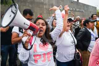 CIUDAD DE MÉXICO, 05OCTUBRE2024.- Trabajadores se manifestaron al exterior de la Cámara de Diputados en favor de una nueva reforma eléctrica. FOTO: MARIO JASSO/CUARTOSCURO.COM