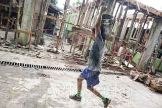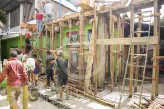 TAPACHULA, CHIAPAS, 08OCTUBEE2024.- Migrantes que están de paso en el albergue Jesús El Buen Pastor ayudan en la construcción de nuevos dormitorios para poder alojar más personas. Se tratan de 30 hombres de diferentes nacionalidades que están colando unas columnas. FOTO: DAMIÁN SÁNCHEZ/CUARTOSCURO.COM