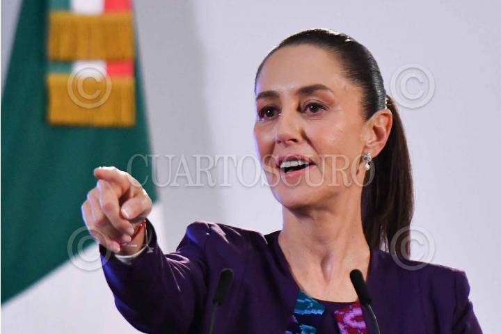 CIUDAD DE MÉXICO, 09OCTUBRE2024.- Claudia Sheinbaum, presidenta de México, durante su intervención en la "Mañanera del Pueblo" realizada en el salón Guillermo Prieto de Palacio Nacional. La mandataria se refirió a la reforma ferroviaria aprobada ayer en la Cámara de Diputados, y sobre la reforma en materia energética. FOTO: MARIO JASSO/CUARTOSCURO.COM