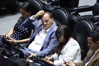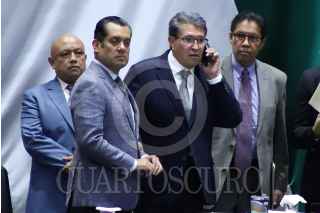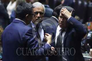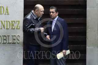 CIUDAD DE MÉXICO, 09OCTUBRE2024.- Rubén Moreira, coordinador de los diputados del PRI y el coordinador de los legisladores del Partido Verde, Carlos Puente, dialogan durante la sesión de este miércoles. FOTO: DANIEL AUGUSTO/ CUARTOSCURO.COM