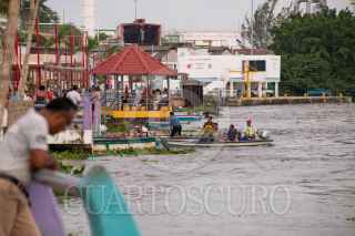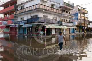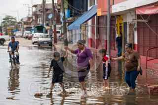 MINATITLÁN, VERACRUZ, 09OCTUBRE2024.- Varias calles de este municipio del sur de Veracruz están afectadas por inundaciones causadas por filtraciones derivadas de la creciente del río Coatzacoalcos. Las lluvias recientes han elevado el nivel del agua, provocando que zonas bajas de la ciudad queden anegadas. Estas condiciones están generando dificultades para el tránsito y la vida cotidiana de los residentes. Las autoridades están monitoreando la situación, emitiendo recomendaciones a la población para extremar precauciones y evitar zonas inundadas. FOTO: ÁNGEL HERNÁNDEZ/CUARTOSCURO.COM