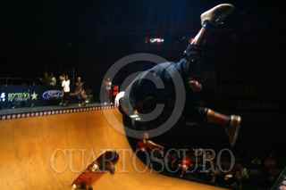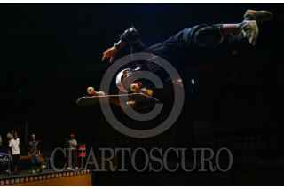 MÉXICO,D,F.,07SEPTIEMBRE2007.-Un deportista extremo Skateboarding realiza un salto durante los entrenamientos previo a las competencias a llevarse este fin de semana en el Palacio de los Deportes. FOTO:SASHENKA GUTIERREZ/CUARTOSCURO.COM