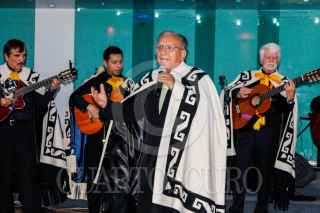 SAN LUIS POTOSI, S.L.P. 10OCTUBRE2024.-.Con un homenaje por parte de la Asociación de Autores y Compositores de San Luis Potosí y Bohemios Potosinos fue reconocido el ingeniero Felipe Cardenas Díaz por sus 56 años de trayectoria como periodista, locutor, actor, director de teatro, coach de voz, poeta e impulsor de la cultura del estado potosino en una noche donde interpretó canciones junto a la Rondalla Universitaria Potosina Fundadores de la cual también es fundador en la Universidad Autónoma de San Luis Potosí. FOTO: MARCELO PALACIOS/CUARTOSCURO.COM