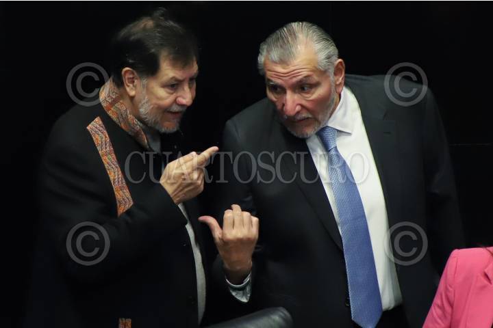 CIUDAD DE MÉXICO, 10OCTUBRE2024.- Gerardo Fernández Noroña, presidente de la Mesa Directiva del Senado, dialoga con el coordinador de los senadores de Morena, Adán Augusto López. FOTO: DANIEL AUGUSTO/ CUARTOSCURO.COM
