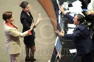 CIUDAD DE MÉXICO, 10OCTUBRE2024.- Lucía Trasviña, senadora de Morena, se hace de palabras con la panista Lilly Téllez por grabarla con su celular durante la sesión. FOTO: DANIEL AUGUSTO/ CUARTOSCURO.COM