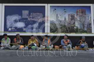 CIUDAD DE MÉXICO, 10OCTUBRE2024.- Trabajadores de obras toman un descanso en Avenida Juárez, en el Centro Histórico. FOTO: GRACIELA LÓPEZ/CUARTOSCURO.COM