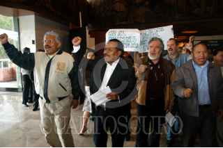 MÉXICO D.F. 07SEPTIEMBRE2007.-Armando Barreiro, Alejandro Sanchez Camacho y Adrian Pedroso, Diputados del PRD, acudieron al bestivulo de la Cámara de Diputados a protestar en contra de la reforma hacendaria y del aumento de la gasolina. FOTO: GUILLERMO PEREA/CUARTOSCURO.COM