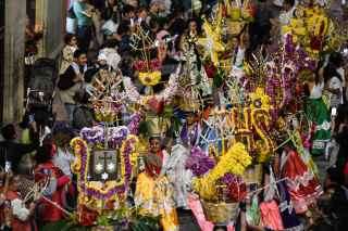 GUANAJUATO, GUANAJUATO, 10OCTUBRE2024.- Se realizó el "convite" o "calenda" (preámbulo o anuncio de celebraciones) como parte de las actividades del 52 Festival Internacional Cervantino (FIC) con Oaxaca como estado invitado. El recorrido inició en el Jardín Embajadoras y concluyó en las inmediaciones de la Alhóndiga de Granaditas. FOTO: MARIO JASSO/CUARTOSCURO.COM