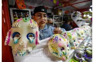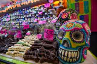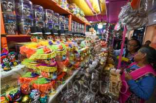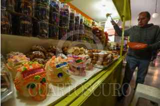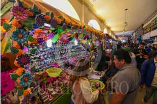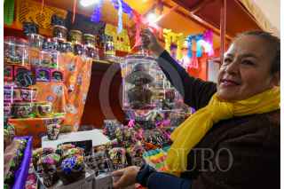 TOLUCA, ESTADO DE MÉXICO, 11OCTUBRE2024.- Calaveras de azúcar, chocolate, alfeñique, dulces tradicionales, paletas de diversos tamaños y formas, papel picado, velas, es parte de lo que se encuentra en la Feria del Alfeñique 2024 en la Ciudad de Toluca, instalados en Los Portales, más de 300 artesanos en 84 locales estarán del 10 de octubre al 3 de noviembre con esta dulce tradición por los festejos del Día de Muertos. FOTO: CRISANTA ESPINOSA AGUILAR /CUARTOSCURO.COM