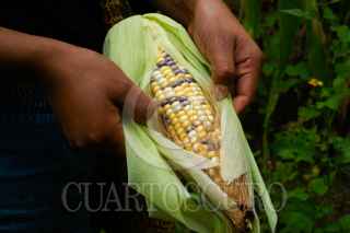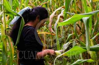 LAZARO CARDENAS CHILIL, CHIAPAS, 14OCTUBRE2024.- Da inicio la cosecha de maíz en la región de Los Altos de Chiapas y en diferentes comunidades las familias se preparan para ir a recolectar sus primeros elotes. En la comunidad de Chilil muchos de los jóvenes permanecen en sus casas en esta temporada del año para ayudar a sus padres en los trabajos de pisca en sus territorios, no solo se siembra maíz si no que se promueve y practica el multicultivo para que la tierra continúe siendo fértil, a un lado de la milpa se siembra frijol, calabaza, chile y tomate verde. FOTO: ISABEL MATEOS /CUARTOSCUO.COM