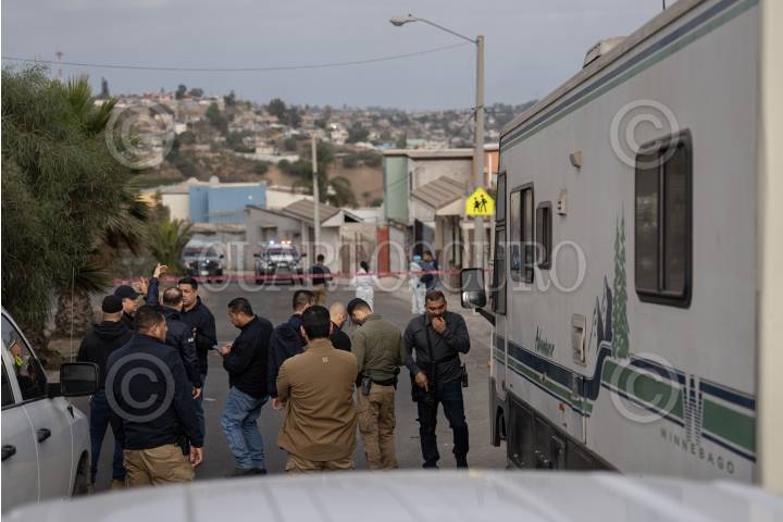 TIJUANA, BAJA CALIFORNIA, 14OCTUBRE2024.- Un ataque armado dejó el saldo de un hombre sin vida; se trata del subcomandante operativo de la Agencia Estatal de Investigación de la Fiscalia General del Estado en el municipio de Tecate. Los hechos se registraron la a mañana de este lunes 14 de octubre sobre la avenida Loma Bonita del fraccionamiento Loma Bonita, cuando el agente identificado como Gerardo Gonzalez Zamorano, salía de su casa, donde se encontraba su familia. De acuerdo a información extraoficial, los responsables apelaron a la fuga a bordo de un vehículo tipo Volkswagen color rojo en dirección hacia el Cañon Reforma, por lo que autoridades desplegaron un operativo para dar con los agresores. El lugar, que está ubicado a un costado de la escuela preparatoria Cobach siglo XXI, quedó altamente resguardado por parte de agentes de la Fiscalía General del Estado, Ejército Mexicano y Policía Municipal. Con más de 16 años de servicio en la agencia, Gerardo Gonzalez, fue ascendido a subcomandante en el municipio de Tecate, luego de haber estado laborando por varios años en la Fiscalía de Homicidios Dolosos en Tijuana. FOTO: OMAR MARTÍNEZ /CUARTOSCURO.COM