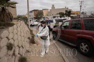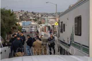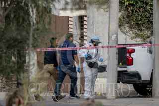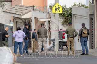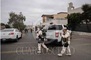 TIJUANA, BAJA CALIFORNIA, 14OCTUBRE2024.- Un ataque armado dejó el saldo de un hombre sin vida; se trata del subcomandante operativo de la Agencia Estatal de Investigación de la Fiscalia General del Estado en el municipio de Tecate. Los hechos se registraron la a mañana de este lunes 14 de octubre sobre la avenida Loma Bonita del fraccionamiento Loma Bonita, cuando el agente identificado como Gerardo Gonzalez Zamorano, salía de su casa, donde se encontraba su familia. De acuerdo a información extraoficial, los responsables apelaron a la fuga a bordo de un vehículo tipo Volkswagen color rojo en dirección hacia el Cañon Reforma, por lo que autoridades desplegaron un operativo para dar con los agresores. El lugar, que está ubicado a un costado de la escuela preparatoria Cobach siglo XXI, quedó altamente resguardado por parte de agentes de la Fiscalía General del Estado, Ejército Mexicano y Policía Municipal. Con más de 16 años de servicio en la agencia, Gerardo Gonzalez, fue ascendido a subcomandante en el municipio de Tecate, luego de haber estado laborando por varios años en la Fiscalía de Homicidios Dolosos en Tijuana. FOTO: OMAR MARTÍNEZ /CUARTOSCURO.COM
