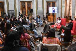 GUANAJUATO, GUANAJUATO, 14OCTUBRE2024.- Silvana Estrada, compositora y cantautora mexicana, ofreció una plática con la comunidad de la Universidad de Guanajuato, previo a su presentación del próximo 15 de octubre en el Teatro Juárez como parte de las actividades del 52 Festival Internacional Cervantino (FIC). FOTO: MARIO JASSO/CUARTOSCURO.COM
