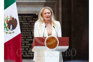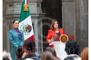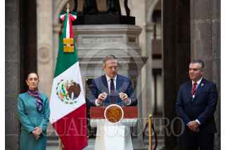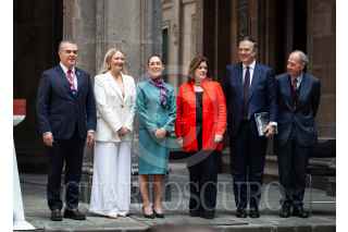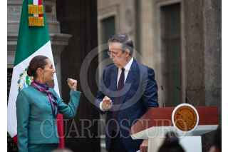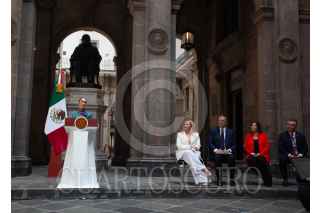 CIUDAD DE MÉXICO, 15OCTUBRE2024.- Claudia Sheinbaum Pardo, presidenta de México acompañada de Marcelo Ebrard Casaubón, secretario de economía y Francisco Alberto Cervantes, presidente del consejo Coordinador Empresarial (CCE) durante conferencia de prensa en Palacio Nacional después de reunión con empresarios de Estados Unidos. FOTO: ANDREA MURCIA /CUARTOSCURO.COM