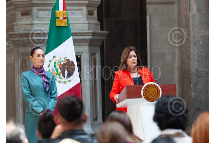 CIUDAD DE MÉXICO, 15OCTUBRE2024.- Suzanne Clark, presidenta y directora ejecutiva de US Chamber of Commerce durante conferencia de prensa en Palacio Nacional después de reunión con empresarios de Estados Unidos. FOTO: ANDREA MURCIA /CUARTOSCURO.COM