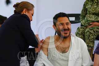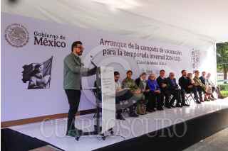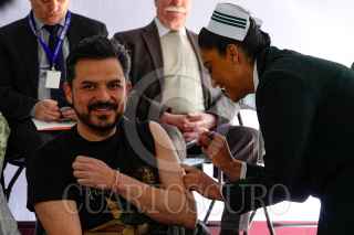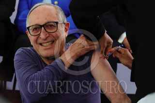 CIUDAD DE MÉXICO, 15OCTUBRE2024.- David Kershenobich, titular de la Secretaría de Salud, durante la aplicación de vacuna contra el COVID-19 la Ceremonia de inicio de la Campaña Nacional de Vacunación para la Temporada Invernal 2024-2025, esto en la explanada del Instituto Nacional de Geriatría (INGer). FOTO: ROGELIO MORALES /CUARTOSCURO.COM