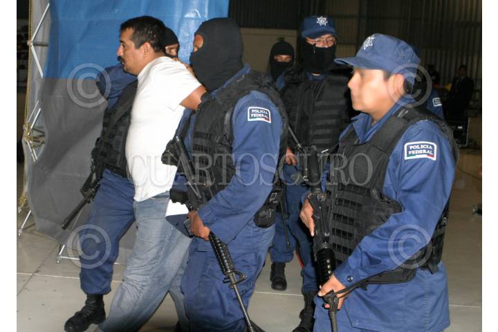 MÉXICO, D.F., 07SEPTIEMBRE2007.- Patricio Patiño subsecretario de Estrategia e Inteligencia Policial de la SSP, , presentó a Alberto Ponce Salazar, presunto jefe de una célula del cártel del Golfo detenido con otros siete personas que ésta noche trasladaron a la ciudad de México escoltados por elementos de la PFP y AFI. FOTO: SAÚL LÓPEZ/CUARTOSCURO.COM