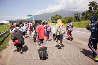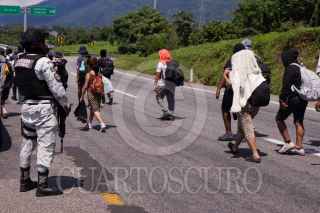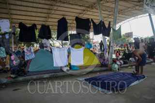 HUIXTLA, CHIAPAS, 15OCTUBRE2024.- La caravana migrante que partió el fin de semana se encuentra en el municipio de Huixtla. El instituto Nacional de Migración (INM) buscó dialogar con las personas para brindarle traslado a albergues, ayuda que rechazaron. Muchos de ellos descansaron en la cancha de fútbol de este municipio. FOTO: DAMIÁN SÁNCHEZ/CUARTOSCURO.COM