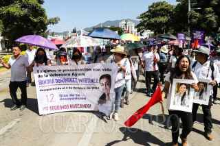 OAXACA, OAXACA, 16OCTUBRE2024.- Esté día, familiares de Sandra Estefana Domínguez Martínez, acompañados de defensores de derechos humanos e integrantes de organizaciones, marcharon en la capital de Oaxaca para exigir la presentación con vida de la abogada y activista, desaparecida desde el 4 de octubre junto con sus esposo, Alexander Hernández, en María Lombardo de Caso, San Juan Cotzocón. A doce días de su desaparición, los manifestantes exigieron una reunión con el gobernador Salomón Jara Cruz y la presidenta Claudia Sheinbaum Pardo, a quienes dirigieron una solicitud desde el pasado 11 de octubre. FOTO: CAROLINA JIMÉNEZ/CUARTOSCURO.COM