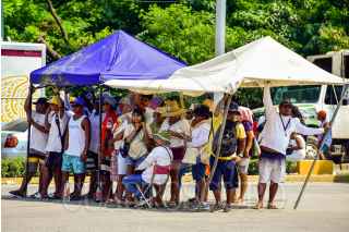 ACAPULCO, GUERRERO. 16OCTUBRE2024.- Prestadores de servicios turísticos de playas ubicadas en la Zona Diamante de Acapulco mantienen un bloqueo por más de 3 horas en el bulevar de Las Naciones, Los manifestantes exigen a las autoridades ser censados para recibir los apoyos para reconstrucción debido a las afectaciones que sufrieron durante el paso del huracán John, hasta el momento se mantienen en negociaciones con autoridades y anunciaron que continuarán bloqueando la avenida sino son atendidos en sus demandas. FOTO: CARLOS CARBAJAL/CUARTOSCURO.COM