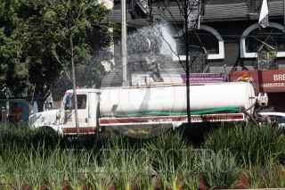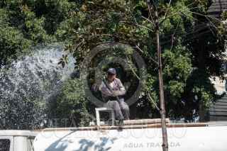 CIUDAD DE MÉXICO, 16OCTUBRE2024.- Un trabajador de la alcaldía Iztacalco riega los camellones del Viaducto Río Piedad, en el marco de los actividades preparatorias de la Formula 1 Gran Premio de la Ciudad de México. FOTO: MOISÉS PABLO/CUARTOCURO.COM