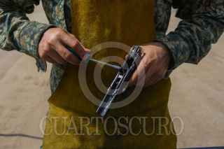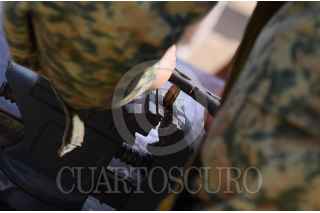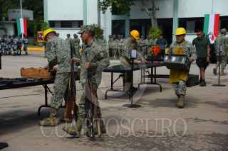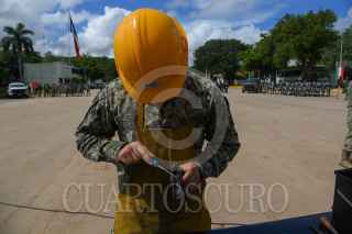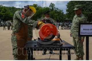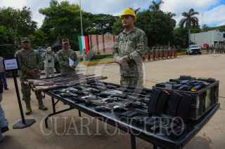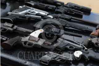 CAMPECHE, CAMPECHE, 16OCTUBRE2024.- El Décimo Batallón de Infantería de la 33 zona militar realizo la destrucción de armas de fuego que han sido aseguradas durante diferentes operativos, se destruyeron 44 armas de fuego, de las cuales 11 eran armas largas, 33 cortas, además de 36 cargadores y 576 cartuchos de distintos calibres. FOTO: MICHAEL BALAM/CUARTOSCURO.COM