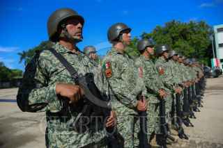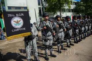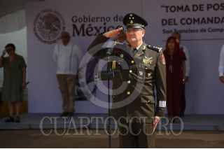 CAMPECHE, CAMPECHE, 16OCTUBRE2024.- Alberto Ramón González Hernández, tomó posesión y rindió protesta de bandera como comandante de la 33 Zona Militar en el Estado de Campeche. En el acto estuvieron presentes la gobernadora del estado Layda Sansores San Román, el comandante del décimo batallón de infantería, Ricardo Flores González, así como, José Ignacio Coronel Cruz de la Fiscalía General de la República (FGR). FOTO: MICHAEL BALAM/CUARTOSCURO.COM