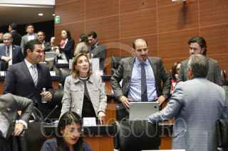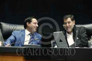 CIUDAD DE MÉXICO, 16OCTUBRE2024.- Los senadores Mauricio Vila y Gerardo Fernández Noroña durante la sesión en el Senado en la que se aprobó la reforma que establece al transporte ferroviario como prioritario. FOTO: CUARTOCURO.COM