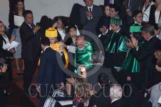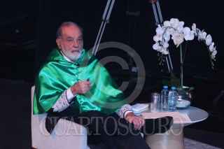 HUIXQUILUCAN, ESTADO DE MÉXICO, 16OCTUBRE2024. El Ingeniero Carlos Slim Helú recibe el Doctorado Honoris Causa de manos de Cipriano Sánchez García, rector de la Universidad Anáhuac, en el Centro Cultural Mexiquense Anáhuac. FOTO: EDGAR NEGRETE LIRA/CUARTOSCURO.COM