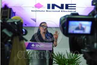 CIUDAD DE MÉXICO, 17OCTUBRE2024.- Guadalupe Taddei, consejera presidenta del Instituto Nacional Electoral, durante la ronda de preguntas y repuestas en conferencia a medios de comunicación en las instalaciones del INE en Tlalpan. FOTO: ROGELIO MORALES /CUARTOSCURO.COM