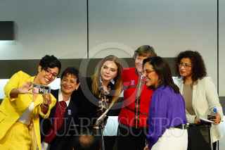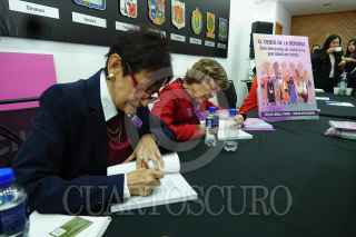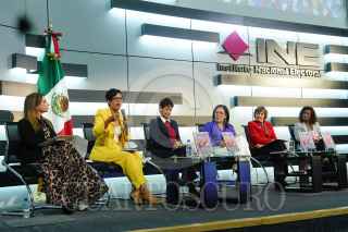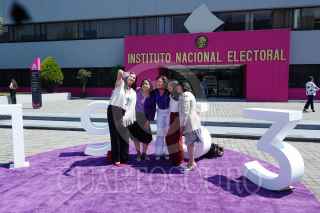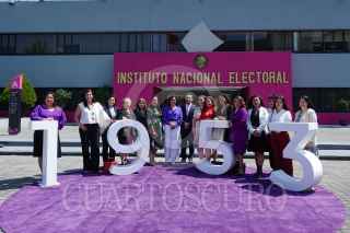CIUDAD DE MÉXICO, 17OCTUBRE2024.- Claudia Zavala, consejera electoral y asistentes a la conmemoración del aniversario por el voto de la mujer a las afueras de las oficinas del INE, tras el evento, "Un nuevo horizonte-71° Aniversario del Voto de las Mujeres en México" en el Auditorio del Instituto Nacional Electoral (INE). FOTO: ROGELIO MORALES /CUARTOSCURO.COM