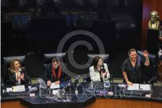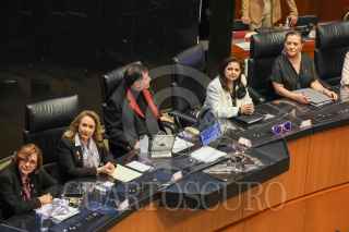 CIUDAD DE MÉXICO, 17OCTUBRE2024.- En el Senado se develó en el Muro de Honor la leyenda: "A las sufragistas que no se rindieron ni abandonaron la lucha por la libertad". A la ceremonia asistieron como invitadas especiales la ministra Yasmín Esquivel; Mónica Soto, presidenta del TEPJF; y Guadalupe Taddei, consejera presidenta del INE, además de senadoras de todas las bancadas. Esta ceremonia se realizó en el marco del aniversario del derecho al voto de las mujeres en México, que se concretó en 1953. FOTO: CUARTOSCURO.COM