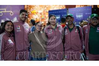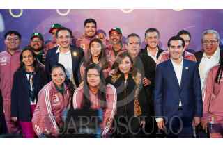 TLAXCALA, TLAXCALA, 17OCTUBTE2024.- Lorena Cuéllar Cisneros, gobernadora de Tlaxacala, y Romel Pacheco, director de la CONADE, acompañaron a la delegación de tiro con arco durante el sorteo para definir los juegos finales de la Copa del Mundo de Tiro con Arco, que se realizó en el Palacio de Gobierno de Tlaxcala. FOTO: ALAIN HERNÁNDEZ/CUARTOSCURO.COM