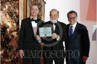 CIUDAD DE MÉXICO, 17OCTUBRE2024.- El empresario e ingeniero Carlos Slim Helú recibió el Premio Italia México por parte de la Cámara de Comercio Italia en el Museo Soumaya. FOTO: GRACIELA LÓPEZ/CUARTOSCURO.COM