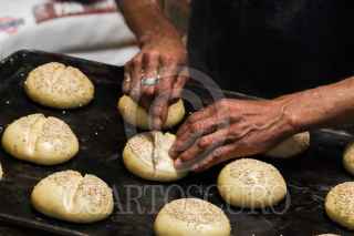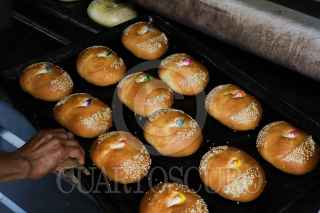 OAXACA, OAXACA, 18OCTUBRE2024.- A 12 días de que inicien las festividades del Día de Muertos en Oaxaca, panaderos ya se preparan para elaborar el pan tradicional que se consume durante la temporada. Piezas pequeñas y de tamaño mediano son horneadas, para que los clientes empiecen a degustar el tradicional pan que se prepara con yema de huevo, canela, anís, mantequilla, y que es decorado con ajonjolí y una “carita” que representa a los fieles difuntos. Este año, el precio de insumos como harina, huevo y azúcar, elevaron sus costos, lo que significa una alza en los precios del pan. FOTO: CAROLINA JIMÉNEZ/CUARTOSCURO.COM