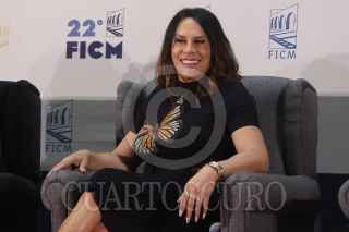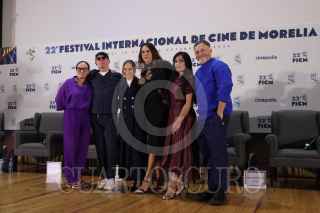 MORELIA, MICHOACÁN, 18OCTUBRE2024. Virginie Montel; Daniela Michel, directora del FICM; Jacques Audiard, director de Emilia Pérez; Karla Sofía Gascón, actriz; Adriana Paz, actriz y Damien Jalet, coreógrafo durante la conferencia de prensa de la película “Emilia Pérez” actividad con la que da inicio el 22° Festival Internacional de Cine de Morelia. FOTO: EDGAR NEGRETE LIRA/CUARTOSCURO.COM