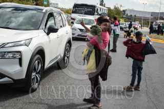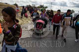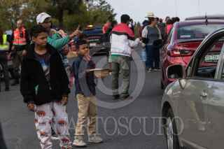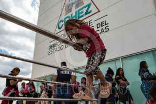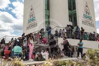 ZACATECAS, ZACATECAS, 18OCTUBRE2024.- Alrededor de doscientas personas migrantes, entre hombres, mujeres y niños; y quienes habría salido en Caravana desde hace dos meses de Tapachula, Chiapas, caminaron por el bulevar metropolitano para después llegar a la Comisión de Derechos Humanos del Estado de Zacatecas, para solicitar atención, comida y medicamentos. Llegaron a la ciudad de Zacatecas desde hace cinco días en camiones que, según informaron, autoridades de Migración Nacional les autorizó para llegar a la frontera con los Estados Unidos. Pero en su recorrido fueron bajados en la ciudad y resguardados en la Casa del Migrante. Después de cinco días esperando la promesa de continuar en los camiones hasta la ciudad fronteriza de Piedras Negras, se desesperaron y decidieron solicitar apoyo al organismo de Derechos Humanos en el Estado. En el lugar fueron atendidos por los visitadores y se les atendió, con revisión médica, agua y alimentos. Hasta el momento la delegación del INM no ha informado del traslado de estos migrantes. FOTO: ADOLFO VLADIMIR /CUARTOSCURO.COM