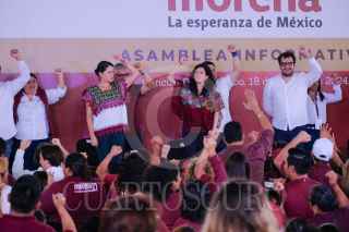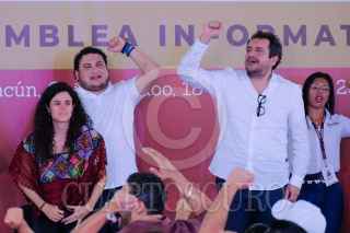 CANCÚN, QUINTANA ROO, 18OCTUBRE2024.- Luisa Maria Alcalde, dirigente nacional de Morena, y José Ramón López Beltrán, secretario general de Morena, encabezaron la Asamblea del Partido con sede en Cancún. FOTO: ELIZABETH RUIZ/CUARTOSCURO.COM