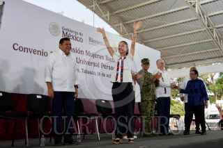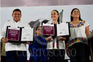 BALANCÁN, TABASCO, 18OCTUBRE2024.- Claudia Sheinbaum, presidenta de México, encabezó el evento protocolario de la "Pensión Mujeres Bienestar" y convenio "Pensión Universal para Personas con Discapacidad". FOTO: PRESIDENCIA/CUARTOSCURO.COM